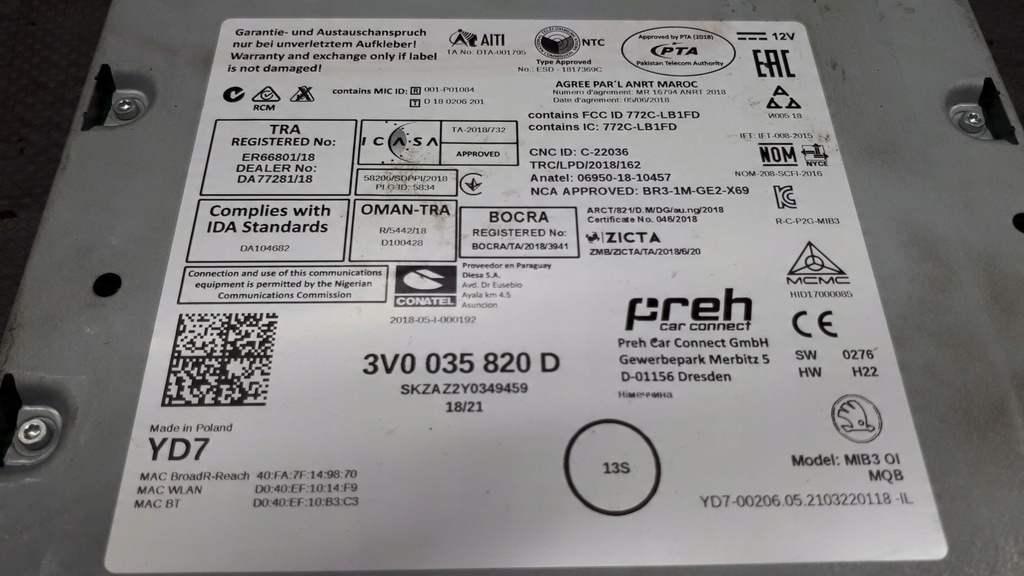 3v0035820d lecteur de navigation skoda superbe karoq