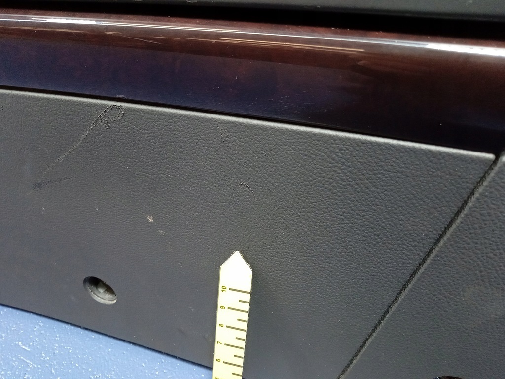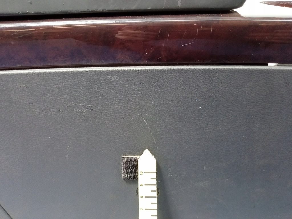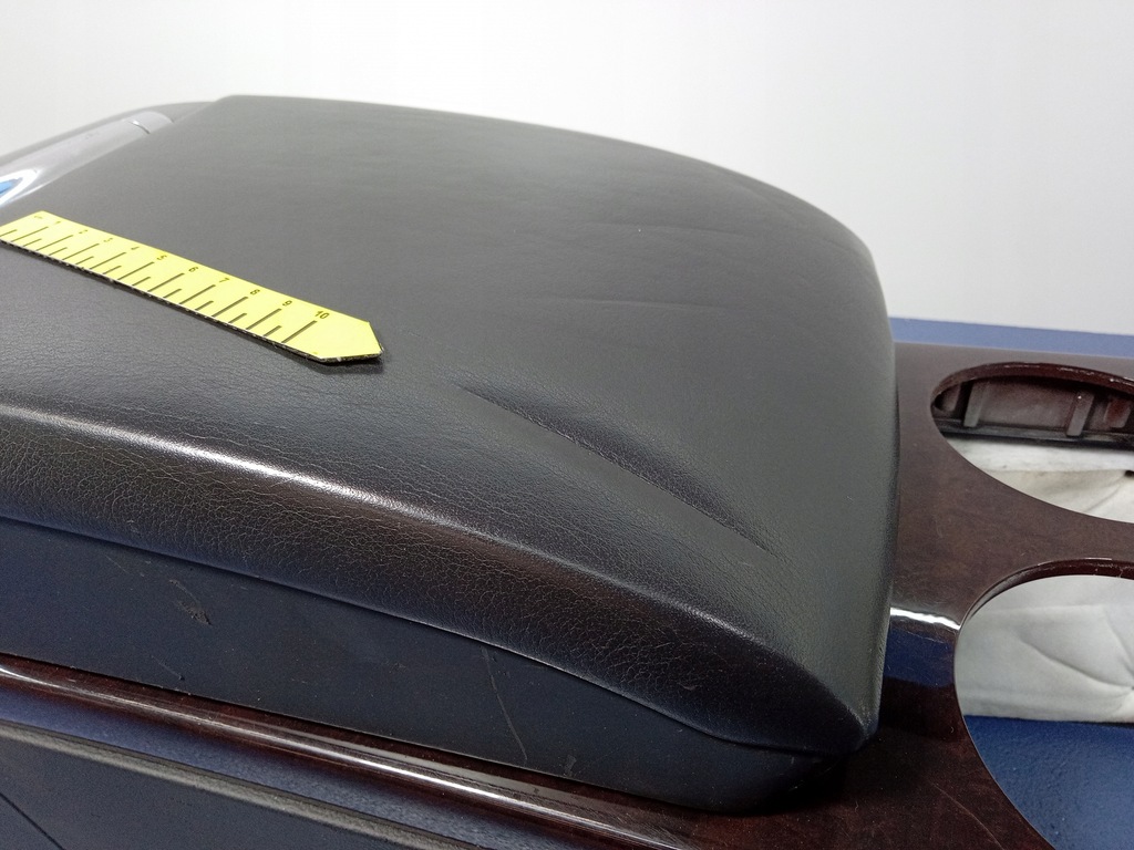 Description : version avec un seul accoudoir, aérateurs arrière, prises 12V, emplacement pour le panneau de climatisation arrière, noir, accoudoir en cuir, bois de myrte foncé, traces d'utilisation visibles, rayures, fissures dans le décor, pas de porte-gobelets, -qualité B&& ACCOUDOIR CENTRAL VW PHAETON TUNNEL