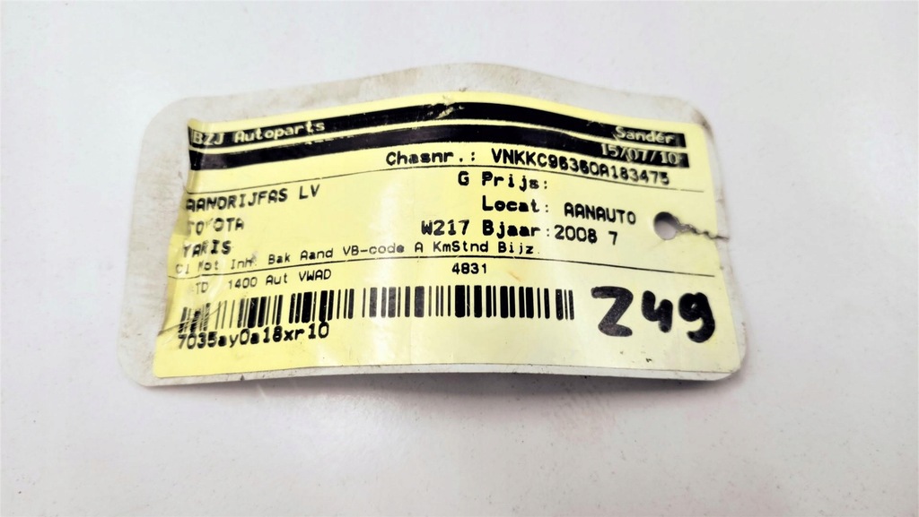 TOYOTA YARIS 1.4 D4D AUT. 43420-00180-B