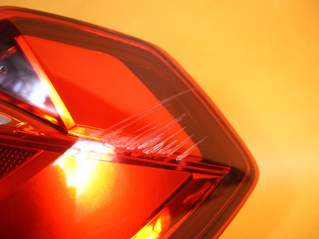 La lampe extérieure droite a une abrasion visible sur les dernières photos