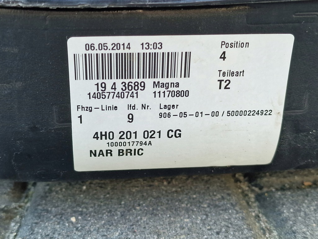 | Numéro de pièce | 4H0201021CG |