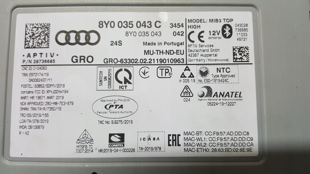 Contrôleur Central, MMI, MIB3, Navigation-- AUDI A3 no. 8Y0035043C, original du démontage, état de la photo (IMPORTANT photo-6), légal, prix pour 1 pc.