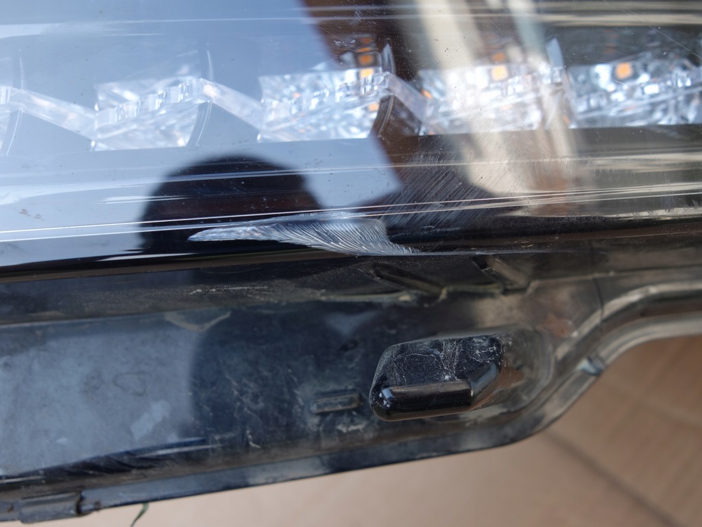LA LAMPE A UNE BOÎTE ENDOMMAGÉE À L'ARRIÈRE ET UN LÉGER DOMMAGE SUR LE VERRE AU-DESSUS DU PARE-CHOCS (PRESQUE PAS VISIBLE)