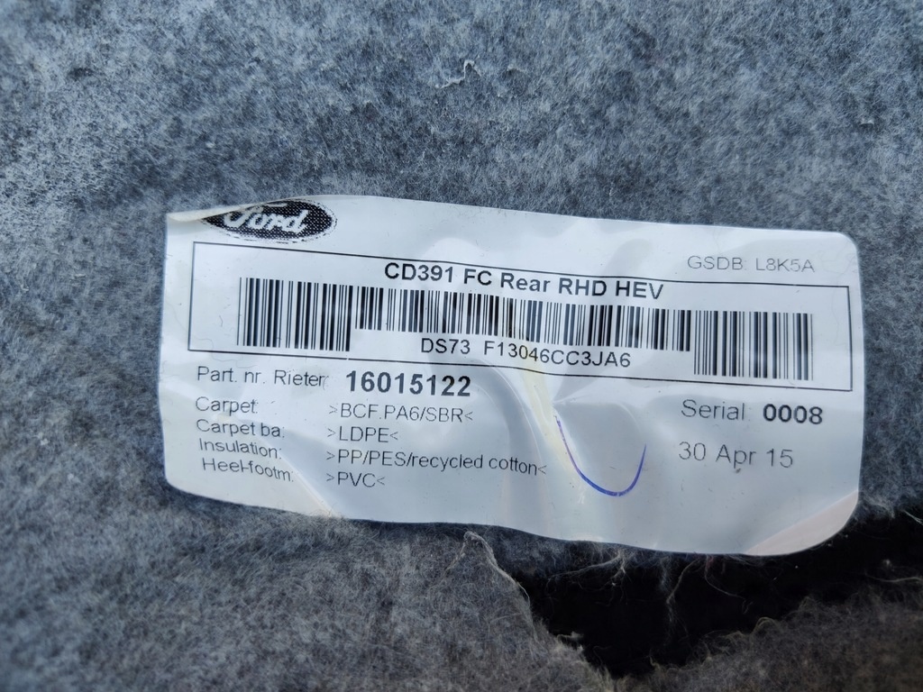 Ford Fusion 2015, tapis arrière