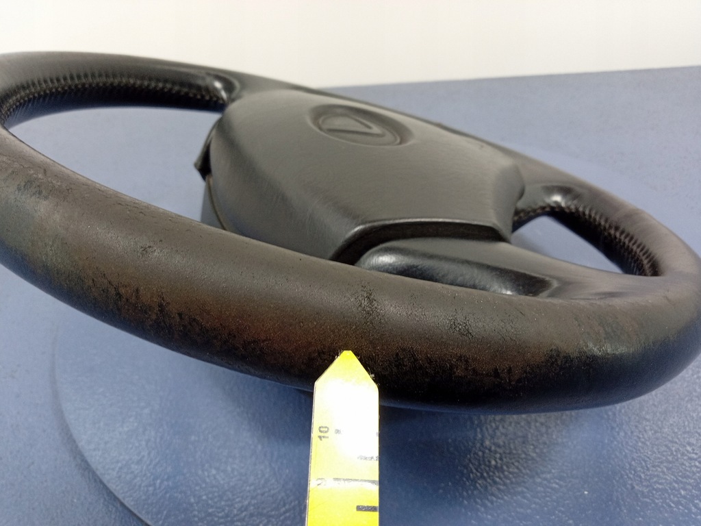 Description : volant en cuir à trois branches, avec régulateur de vitesse, coussin, signes visibles d'usure, abrasions, qualité B && LEXUS GS II MK2 97-00 VOLANT EN CUIR