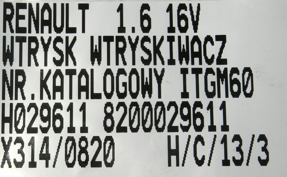 | Numéro de pièce | ITGM60 H029611 8200029611 |