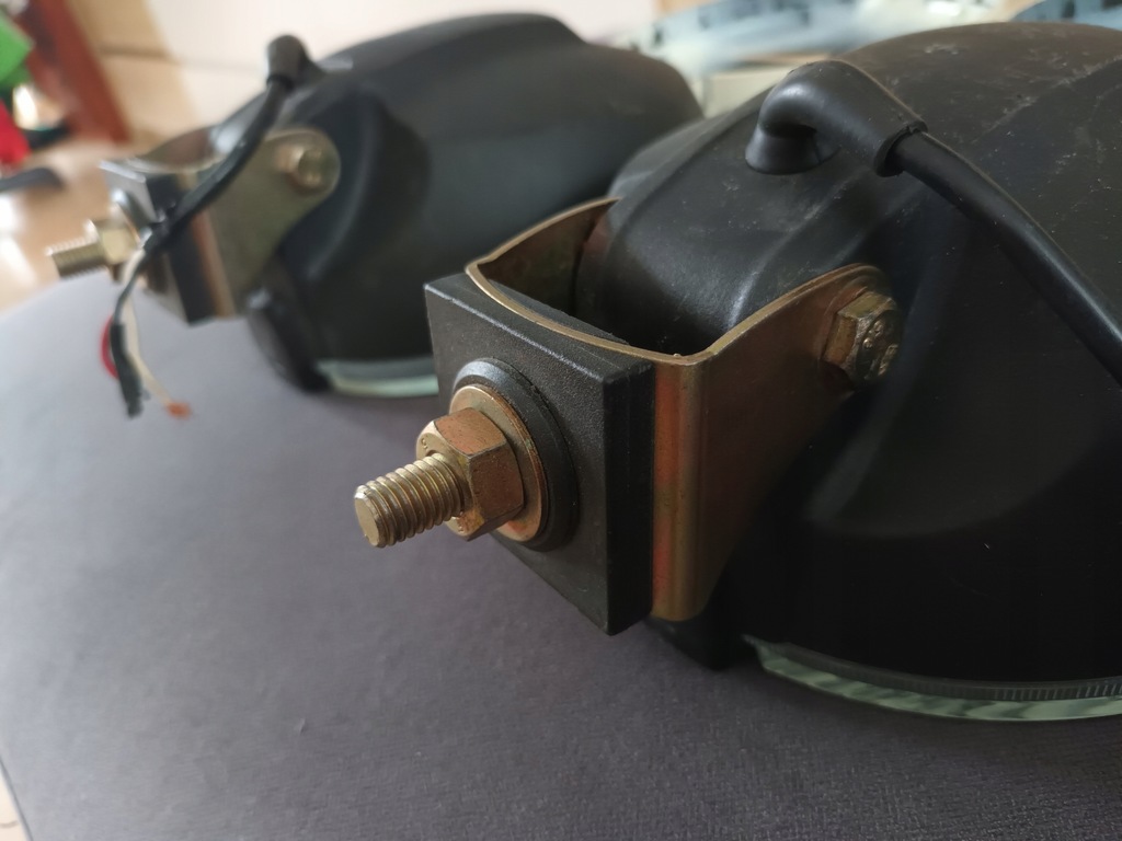 Bonjour - Lampes halogènes longue portée Wesem à vendre avec positions (les ampoules sont déjà installées) et fiches avec inscription Hella - une fiche a une petite fissure mais cela ne la dérange en rien, elle ne tombera pas. Les halogènes sont en très bon état, les supports ont l'air neufs et le verre n'est pas rayé, il est possible de l'inspecter à Piaseczno. je recommande
