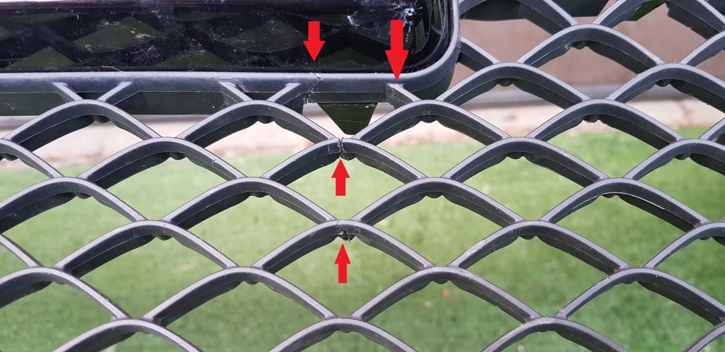 La calandre centrale présente de petites fissures comme indiqué ci-dessous (non visible de l'extérieur)
