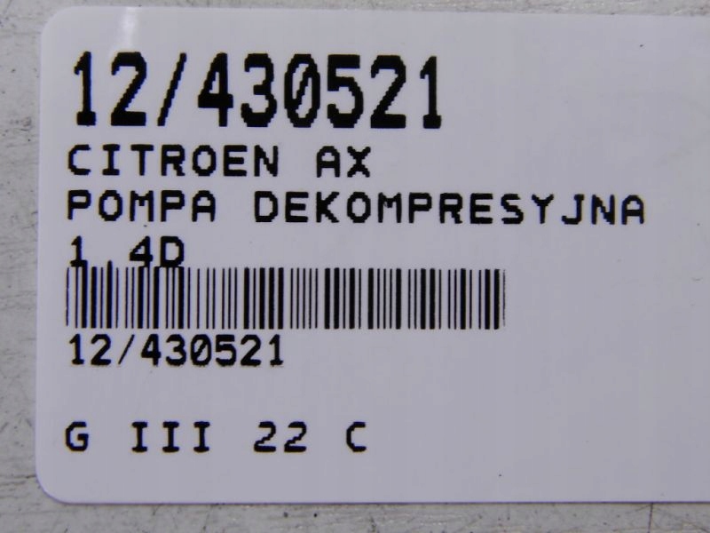 POMPE A VIDE CITROEN AX 1.4D 443029D VAPEC 12