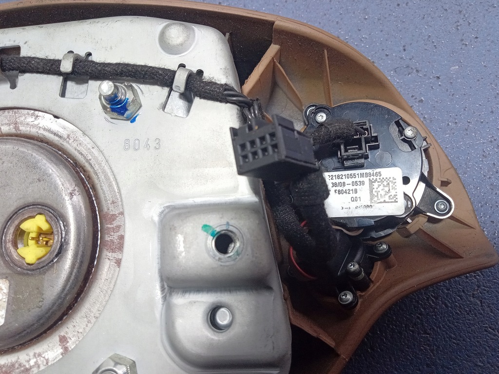 Description : l'ensemble comprend un tableau de bord 200 (Revêtement en cuir) 204 (LEDER - BRAUN), ceintures de sécurité avant, airbag conducteur avec multifonction 61580330, airbag passager A2218601302, contrôleur d'airbag A0048201326, traces visibles d'usure de la sellerie, écorchures, rayures, manque d'un air ventilation - qualité B && S W221 COUSSINS DE CONSOLE DE PLANCHE KPL EU