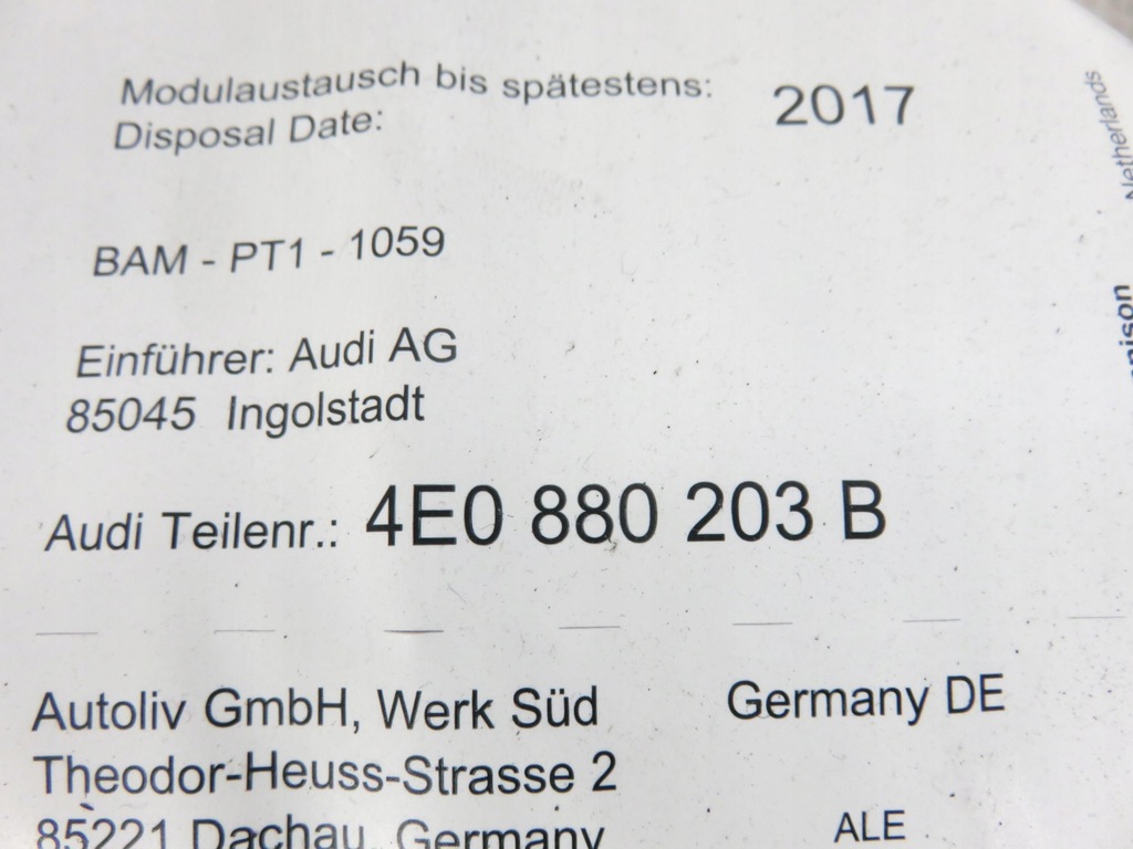 | Fabricant de pièces | Audi OE |