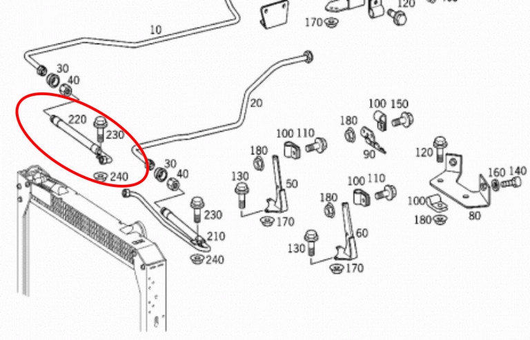 Objet : Conduite d'huile de boîte de vitesses montée dans le refroidisseur d'eau.