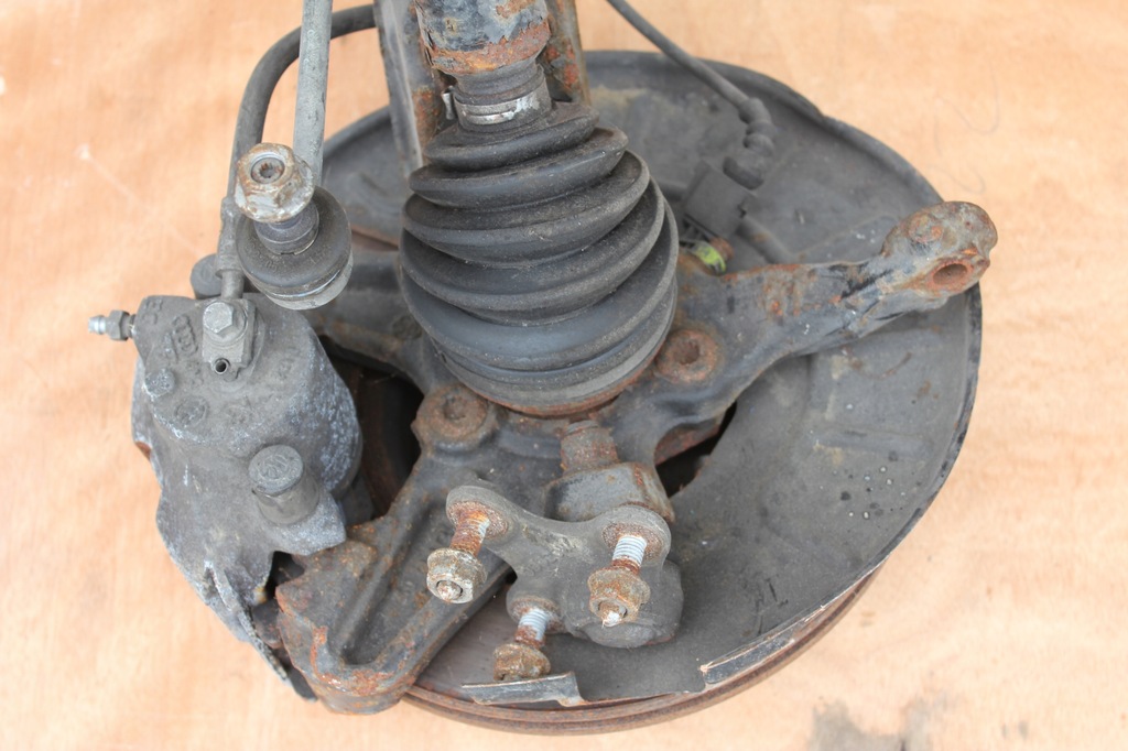 Usagé d'origine. Ensemble VwAG. fusée d'essieu, moyeu à 3 trous, disque, étrier + plaquettes, amortisseur (ressort, douille) et arbre de transmission, conçu pour les moteurs 1.6, 1.6 TDI, 1.9 TDI, utilisé dans :