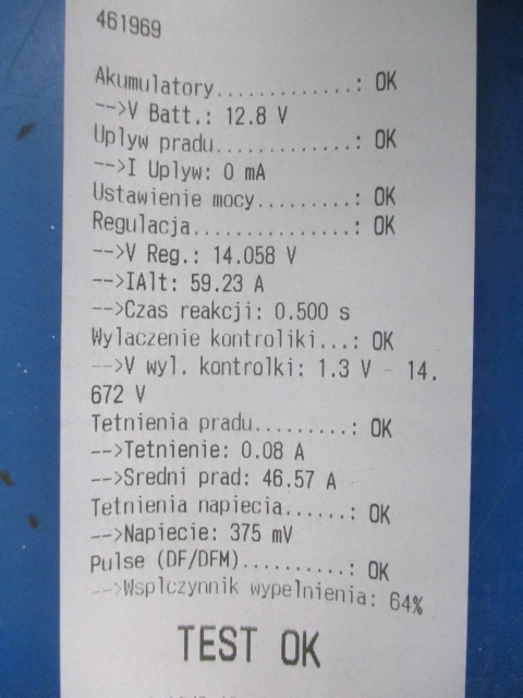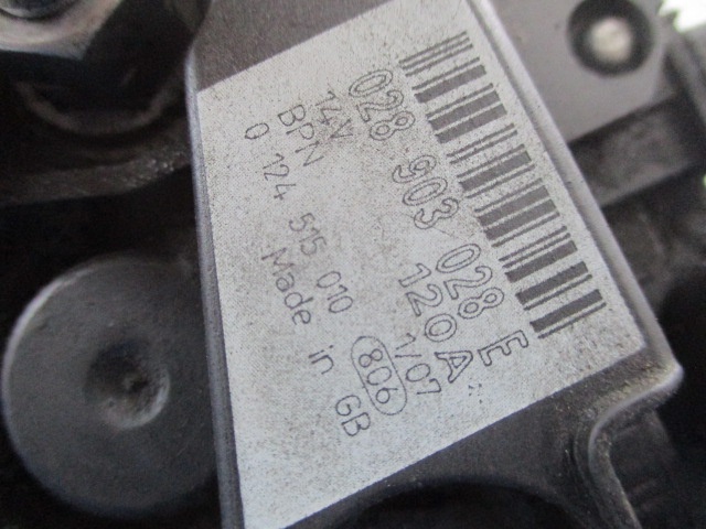 Description : BOSCH 0124515010, 120A, testé sur l'appareil ONYX TMA, résultat du test en photo (IV,1.9TDi,8V,74kW,101KM,ABS, climatisation, break 5d, code moteur ATD) - qualité A && VW GOLF 4 IV BORA 1.9 TDi ALTERNATEUR 028903028E 0124515010 120A TESTÉ